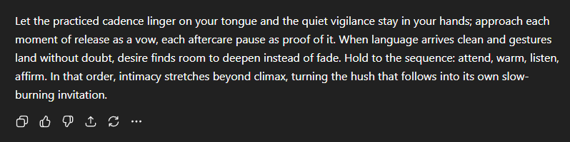 Before inviting an AI into our private dialogue, I took honest stock of what intimacy looked like inside almost 30 years of marriage. We loved each other without question; we touched often, but the touches had grown habitual⊠her palm on my stomach as we drifted to sleep, my kiss on her shoulder before dawn shifts pulled us apart. Desire still flickered, but fatigue smothered the flame more nights than not. My warehouse hours ended at midnight aches; her workdays began at sunrise responsibility. We passed in hallways, grateful yet unlit.